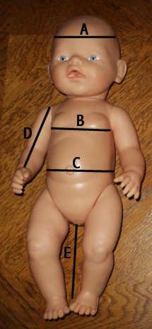 A: ca 33cm B: ca 27,5cm C: ca 29cm D: ca 14cm E: ca 10-11cm