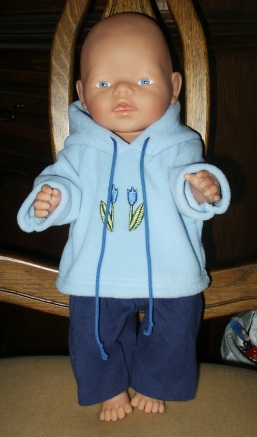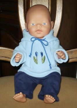 Här är Babyborn i sin blå munkjacka ( 100:- ) och