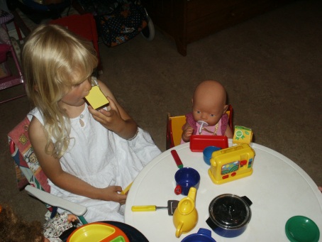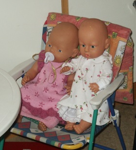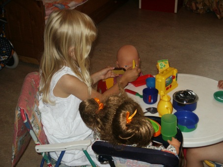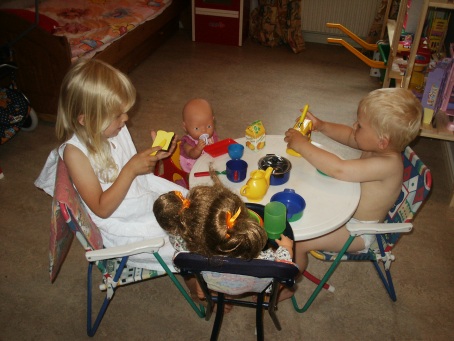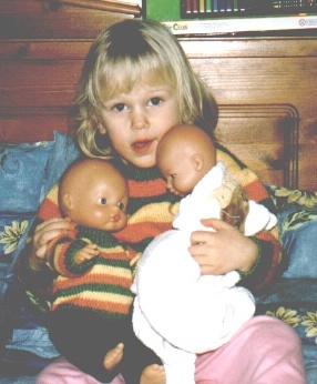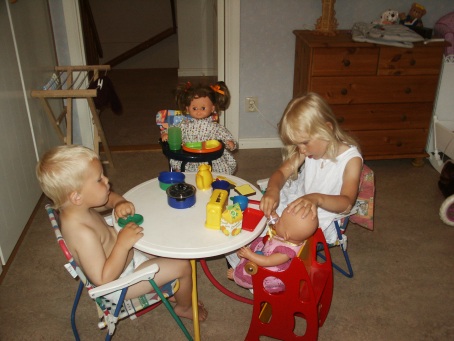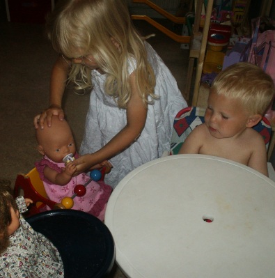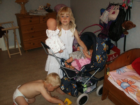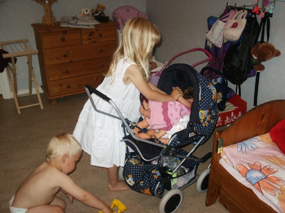 är lite bilder på Amanda och Jepser som leker med dockorna,