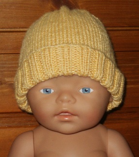 Mössa till babyborn. Stickat i 70% acryl och 30% viskos.