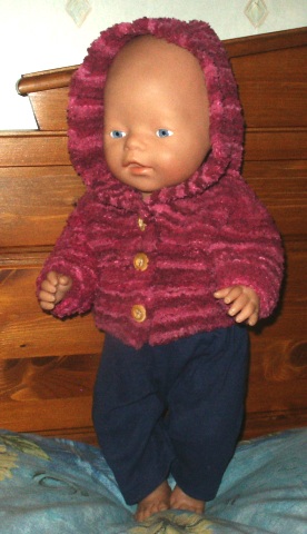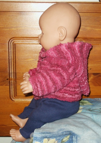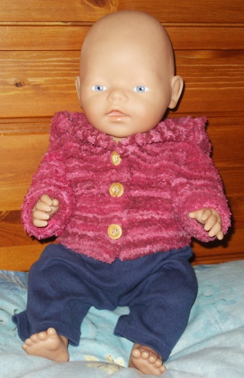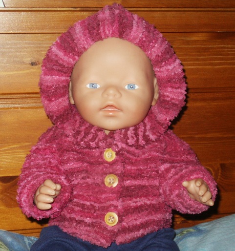 Rosa stickad munkjacka i 100% micro polyester, ett extra mjukt chenillegarn