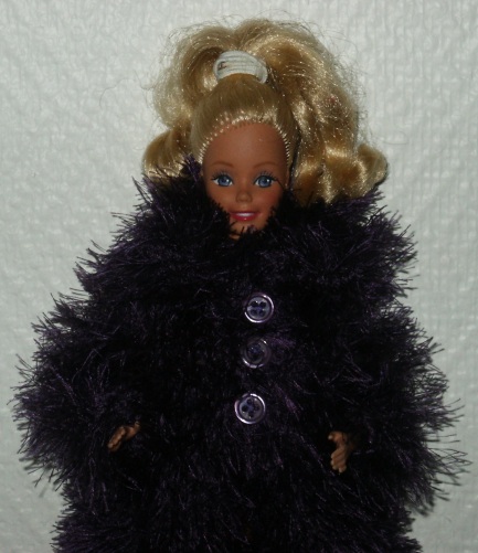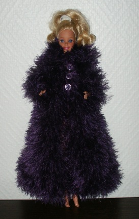 Lila kappa stickat i pälsgarn. Kappan har 3 knappar fram. 100% polyester, tvättas i 30 grader.