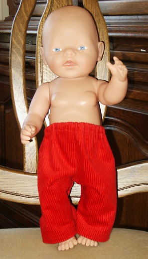 En röd manchesterbyxa till skrållan. Om man drar på ränderna lite så har dom kommit åt fel håll därför sälj dessa ut jättebilligt just nu.