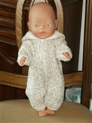 Naturvit overall till babyborn med dragkedja. Overallen är melerad naturvit/nougat.